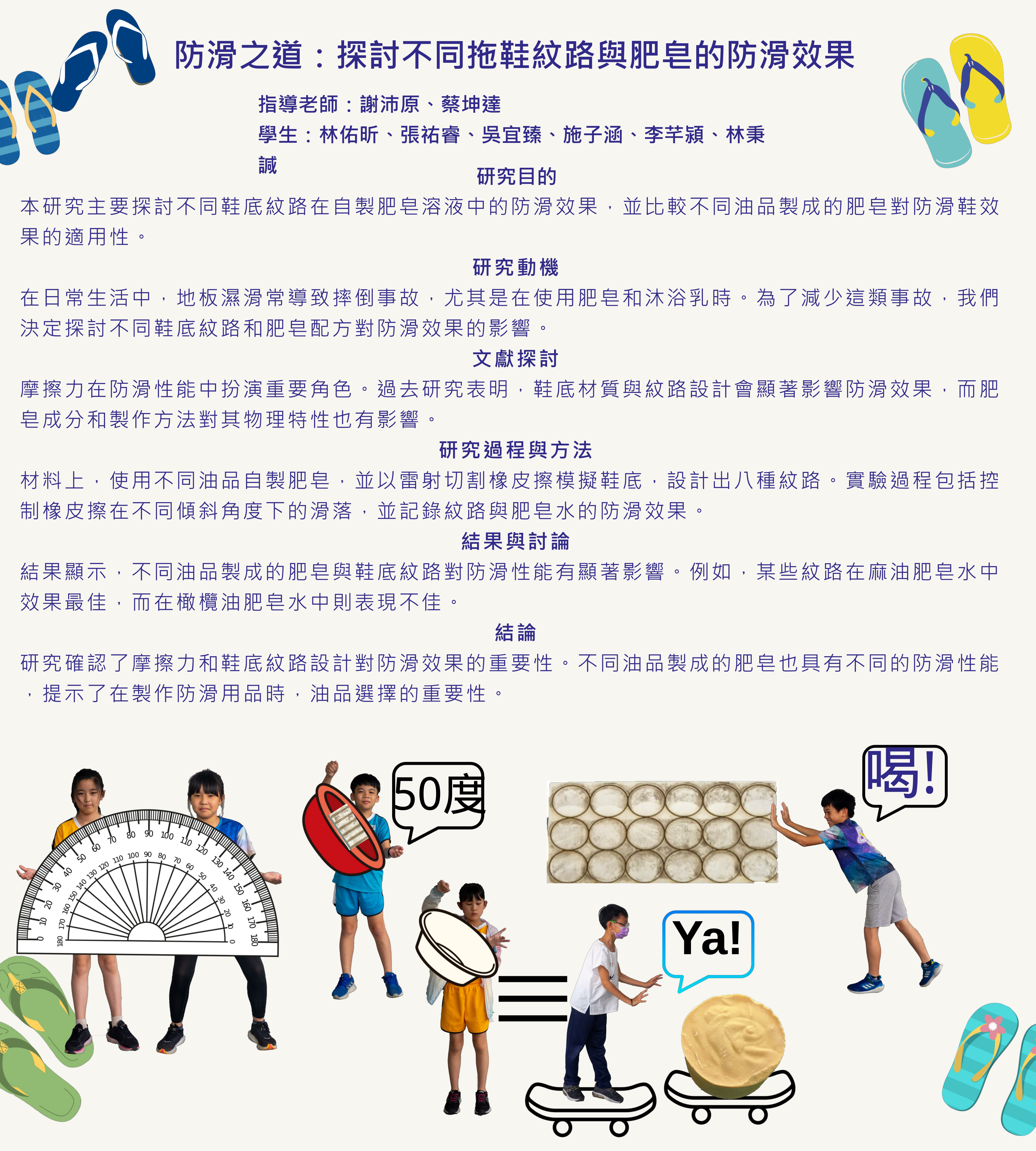 第三名 永福國小-防滑之道_探討不同拖鞋紋路與肥皂的防滑效果